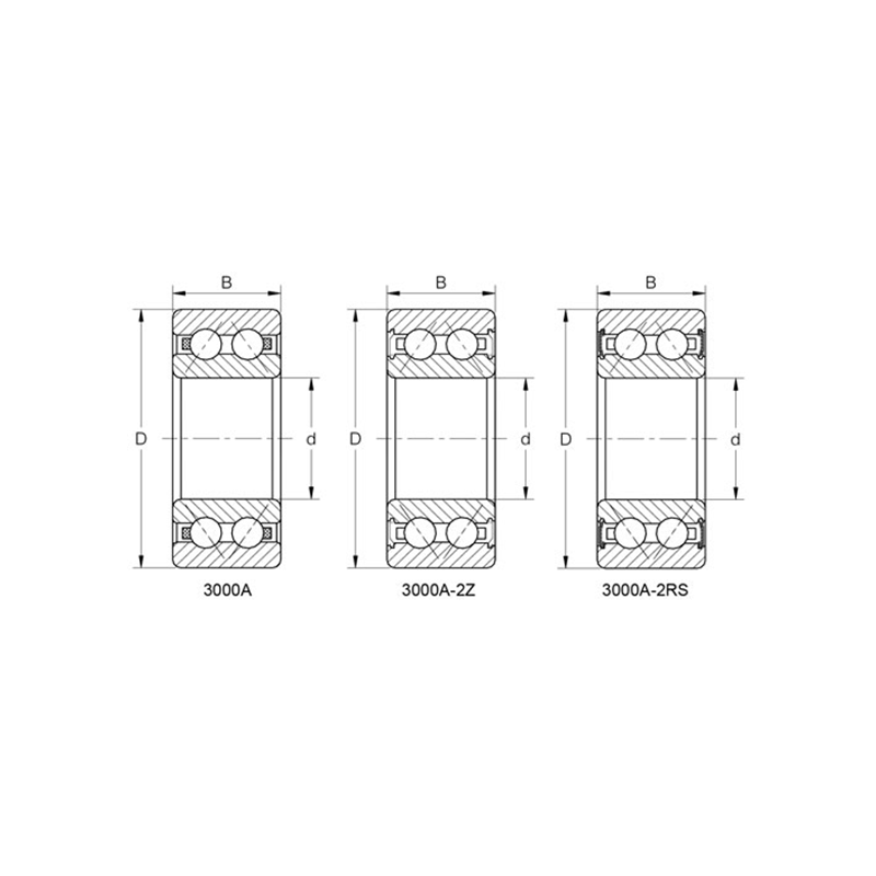 | 3000A-2RS | 10 | 26 | 12 | 5.5 | 3.2 | 18000 | - | 0.022 |